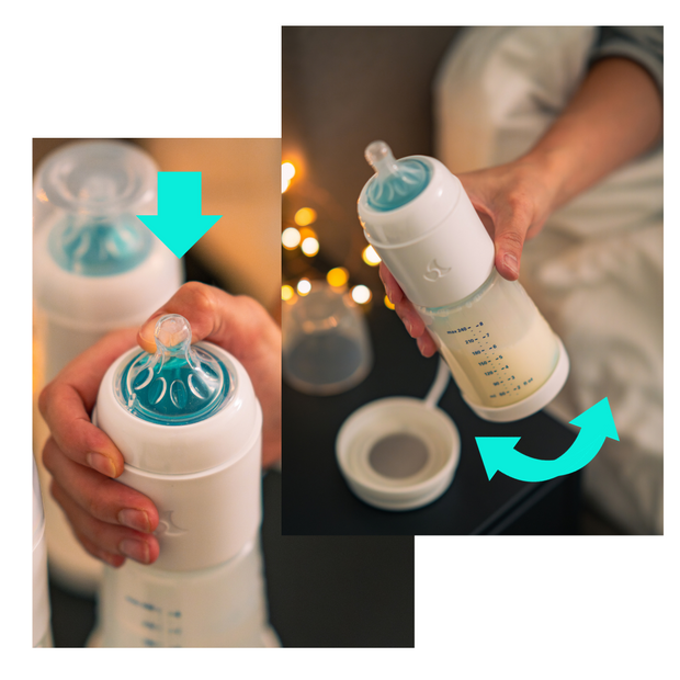 - Placer le deuxième biberon sur la station chauffante snoozi.