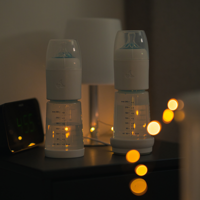 Le biberon de nuit snoozi est un biberon spécialement conçu pour l'alimentation nocturne. Préparer le biberon en 5 secondes, sans se lever ni allumer la lumière.