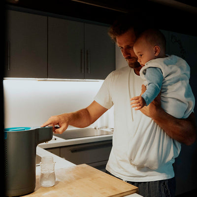 Avec une bouilloire, tu te donnes plus de travail que nécessaire la nuit. C'est justement le fait de se lever et d'attendre longtemps qui fait de cette méthode l'une des manières les plus stressantes de préparer le biberon la nuit.